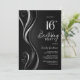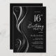 Modern Black Silver 16th Birthday Party Invitation