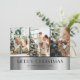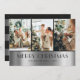 Modern Black Silver Photo Collage Christmas Cards