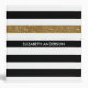 Personalize this modern wide horizontal black and white stripes pattern 2 inch binder with a gold glitter stripe by adding the name of any girly girl. This trendy graphic striped pattern is perfect for the chic fashionista. Flat printed image, NOT actual glitter.