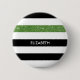 Modern Black Stripes FAUX Green Glitz and Name 2 Inch Round Button