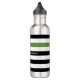 Personalize this modern wide horizontal black and white stripes pattern water bottle with a glitzy green glitter-like stripe by adding the name of any girly girl. This trendy graphic striped pattern is perfect for the chic fashionista. Flat printed image, NOT actual glitter.
