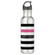 Personalize this modern wide horizontal black and white stripes pattern water bottle with a hot pink glitter stripe by adding the name of any girly girl. This trendy graphic striped pattern is perfect for the chic fashionista. Flat printed image, NOT actual glitter.