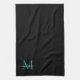Modern Stylish Elegant Black Teal Aqua Green Monogram Script Name Kitchen Towel