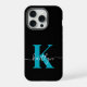 This simple, elegant black iPhone 15 Pro Case with your first name in a trendy script font in white typed over your first initial in a modern cap font in teal would look fabulous on your cell phone and will keep it protected from breakage. It's stylish and trendy and yet very classic.