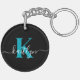 Modern Black Teal Script Monogram Keychain