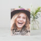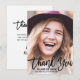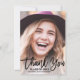 Send a minimalist custom photo graduation thank you card to your family and friends for their generous support. This simple and chic design features your picture on the front with an overlay of black script typography that reads "Thank You" with your name and year to personalize. The back of the card has a thank you message with signature to customize accented by a graduation cap. Congrats on your graduation! Designed by Susan Coffey.
