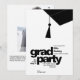 A minimalist black tassel graphic and bold “grad party” headline pairs with a clean photo layout and contemporary design for a stylish, editorial look. Fully customizable colors, text, and photo make it easy to create a unique invitation for your graduate.