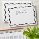 Enhance your graduation invitations, announcements, and thank you cards with these Modern Black Wavy Frame personalized graduation envelopes. The front of the envelope showcases a stylish black wavy frame border with "Deliver To" elegantly written in a handwritten black script, creating a modern look. The back flap features a graduation cap with the graduate’s name and return address in bold black lettering, adding a personalized touch. Perfect for high school and college graduation mailings, these custom envelopes bring a polished and professional feel to your special celebration.