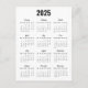 Modern Black White 2025 Calendar Full Year View Postcard
