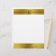 At the top, there's a display initial you can change to show the correct monogram. The black letter is inside a faux gold square that has a black border. Two black lines are behind the square. At the bottom, there are four lines of black display text for your custom text such as a name, professional title, address, phone number, website, or email address. The faux gold elements are not made of foil.
