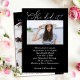 Celebrate a proud milestone with this modern black graduation announcement, featuring an elegant photo layout on the front with stylish script and arch detailing. The reverse side includes a personalized message to share the exciting news with family and friends—perfect for sending formal announcements without a party. Easily customize with your own photo and text. Personalize this invitation by editing the text using the template boxes on the right, or click "Edit using Design Tool" for advanced customization. If you need assistance, feel free to message me—I’d love to help!