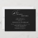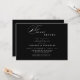 A modern, clean, and sleek Night Before Rehearsal Dinner announcement adorned with a swirling wisp of calligraphy against a black and white background creates the perfect announcement for family and friends. Easily customize the front and back with your personal details to make it your own.
