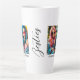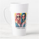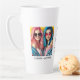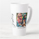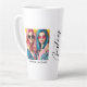 This modern photo collage latte mug for best friends features two photos for you to change to your own on a simple black background with the Title "Bestie" and your names to personalize in white script. Placeholder images generated with AI.