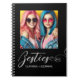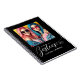 This modern photo notebook for best friends features one photos for you to change to your own on a simple black background with the Title "Bestie" and your names to personalize in white script. Placeholder images generated with AI.