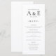 Keep your reception elegant and cohesive with this modern black and white wedding menu. Featuring a minimalist layout and a bold couples monogram, this design adds a sophisticated touch to each place setting. Perfect for showcasing your carefully curated meal selections, it complements a timeless celebration while guiding guests through the dining experience in style.