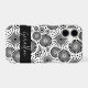 This is a high-contrast, modern, monochrome pattern featuring an intricate overlay of geometric and botanical forms. The design achieves a harmonious balance between the precision of simple shapes and the fluidity of natural inspiration.