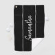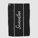 Get your game on with this Modern Black White Hand Lettering Script Name Golf Towel. It is an elegant minimal design with customizable background and white trendy hand lettering script font on the centre. Makes perfect gift idea for women golfers!
