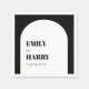 These beautiful napkins are the perfect addition to your wedding reception. The black and white colour scheme adds a pop of colour to your tables, while the bride and groom names give them a personalized touch. The napkins are made of high-quality paper, ensuring that they will hold up well against spills and handling. Use them to add a finishing touch to your reception and to impress your guests with your attention to detail.