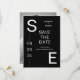This modern minimalist simple photo wedding Save the Date card features black background with modern white calligraphy and initials, monogram. At the back you can personalize this trendy Save the Date with your own photo.