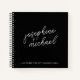 This simple modern black and white wedding guest book features easy to love shades for your minimal modern wedding. This design features playful cursive typography and is fully customizable to include the bride and grooms first names and is a budget friendly and cost-effective solution so you can spend on the most important items for your special day.