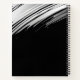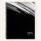 Modern notebook features a minimal artistic abstract design in a classic black and white colour palette. Custom monogram initials + notes presented right justified, framed by a minimalistic artistic swoosh design.