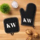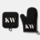 Modern Black White Monogram Initials Personalized Oven Mitt & Pot Holder Set