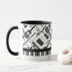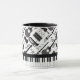 If you love music you'll love this beautiful mug with a black handle and interior featuring several key instruments including guitars, violins, drums, trombones, clarinets, trumpets, symbols and a keyboard! The colours are striking in black and white you may choose any colour for the text. Easily change the text to make it personal for a gift to yourself and your music-loving friends. You may delete the text if desired. © The Pattern Press.