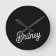 Modern Black White Personalized Monogram and Name Round Clock