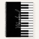 Modern Black & White Piano Keyboard Monogram Name Notebook