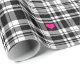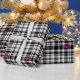 Modern black white plaid pattern, pink hearts wrapping paper