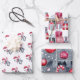 A stylish set of 3 wrapping paper sheets featuring watercolor illustrations in shades of red, white and black.
