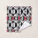 Bathroom towel set featuring a black, white, and red diamond pattern.