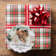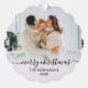 Modern Cute Minimalist Script 2 Photo Merry Christmas Script Holiday Ornament Card. This festive, simple minimalist, whimsical two photo holiday greeting card template features Family Name, Year and a „Merry Christmas” greeting text which is written in a hand lettered swirly swash-tail font calligraphy script photo overlay in black on white gradient. Pretty greeting card for your family and friends in Christmas Holiday season.