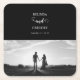 Modern Black & White Script Couple Photo Wedding Square Paper Coaster