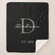 Modern Black White Script Family Monogram Name Sherpa Blanket
