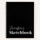 Keep your artwork in this Modern Black White Script Personalized Sketchbook Notebook. It is modern designed with black background on the front and back sides. The front has name in grey hand lettered script font and the text "sketchbook" in bold white letters. Click personalize template option and enter name.