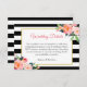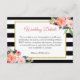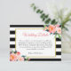 Modern Black White Stripes Floral Wedding Details Enclosure Card