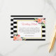 Classy Black White Stripes Floral Wedding Details Card.