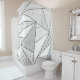 Elegant and unique black strokes triangles compilation, featuring a collection of triangles geometric shapes filled with various geometric patterns, mermaid scale, chequered, squares, wavy swirls, retro daisy flowers, chevron zigzag, dots, in black, grey, and white shades. Modern, luxury monochromatic geometry art design.