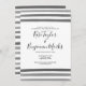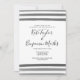 A modern black and white engagement party invitation featuring watercolour stripes either side of your wedding details, with the happy couple's names highlighted in an expressive script font. Designed by Thisisnotme©