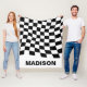 Modern Black White Wavy Chequered Pattern Monogram Fleece Blanket