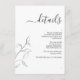 Introducing the Modern Black White Script Botanical Wedding Details Enclosure Card! This beautiful card is perfect for adding a personal touch to your wedding invitation suite. Designed to coordinate with wedding invitation in the same theme, the modern floral line art and elegant calligraphy make this card a stunning way to include all of the important information for your guests. You can even include your wedding website on the card for easy reference. The card holds up to 26 lines of text, so you can be sure to include everything you need. Whether you're looking for a way to add a personal touch to your wedding details or just want a beautiful and modern way to include all the important information, the Modern Black White Script Botanical Wedding Details Enclosure Card is perfect for you! Contact designer for matching products. View collection here: https://www.zazzle.com/collections/modern_black_white_script_botanical_wedding-119688833306110355 Copyright Elegant Invites, all rights reserved.