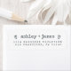 Chic, modern and simple wedding return address label with your names in off-black modern typography on a white background with a stylish touch of hand drawn hearts. Simply add your names and address. Exclusively designed for you by Happy Dolphin Studio.