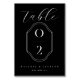 A timeless, classic, and elegant wedding table number sign with a modern minimal aesthetic in classic black and white. Simple elegant table number crest with simple typography arranged in a modern layout. **All colours can be changed to suit your wedding colour preference. Check out our other matching wedding items for this collection.