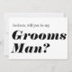 Modern black and white bold wedding proposal with the words "Will you be my groomsman?" and personalized with his name.