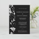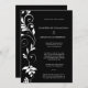 This elegant wedding invitation features a striking black background adorned with a graceful white botanical vine design that cascades vertically along one side. The flowing leaves and curving tendrils add a timeless, romantic feel while maintaining a clean, modern aesthetic. Crisp white typography contrasts beautifully against the dark backdrop, creating a refined and formal look that is easy to read and visually balanced. The overall design blends classic elegance with contemporary simplicity, making it suitable for a wide range of wedding styles—from traditional and formal to modern and minimalist—and works beautifully for any couple seeking a sophisticated, gender-neutral invitation.