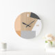 Modern Block Stripes Pattern Art On Faux Woodgrain Large Clock