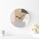 Modern Block Stripes Pattern Art On Faux Woodgrain Large Clock