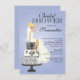 Start off your elegant bridal shower off right with our trendy blonde bride bridal shower invitation featuring a classy Blonde bride sitting on a stylish damask 3 tier wedding cake set on a purple blue background. Just customize our invitation with your wedding shower information and you're all set to go. ©JW Illustrations