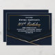 Get ready to celebrate in style with this modern gold-framed blue 100th birthday party invitation! Perfect for semi-formal or black-tie affairs, this invitation exudes sophistication and elegance. Whether you're hosting an intimate dinner or a grand celebration, this invitation will make your event truly unforgettable.